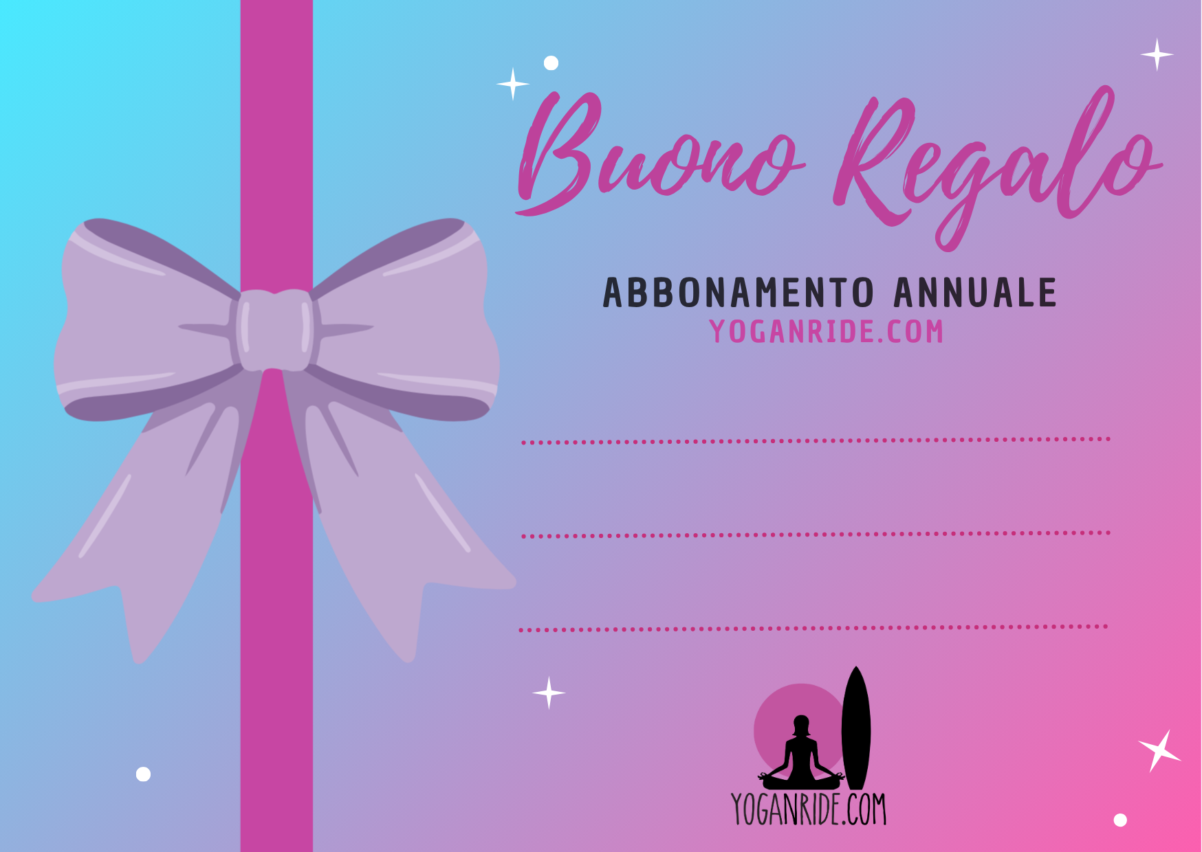 Questo abbonamento garantisce l’accesso illimitato a tutti i contenuti riservati di Yoga n’ Ride per 12 mesi.