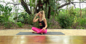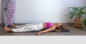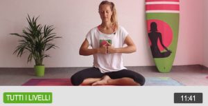 In questa fase lavoriamo sulla respirazione, perché è un potentissimo ponte di collegamento tra corpo e mente. Ci aiuta a sciogliere le tensioni e a stimolare il sistema nervoso parasimpatico, che è quello che induce il rilassamento.
